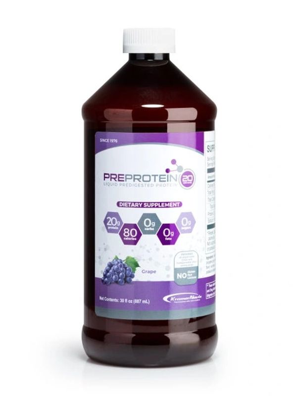 Pre-Protein® 20 is a predigested liquid protein containing all indispensable and dispensable amino acids with added L-Tryptophan and L-Cysteine. This 30 oz. bottle provides up to 15 servings in a convenient container and may be mixed with a favorite beverage or consumed directly.