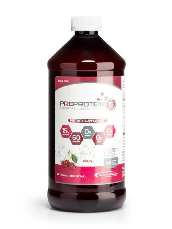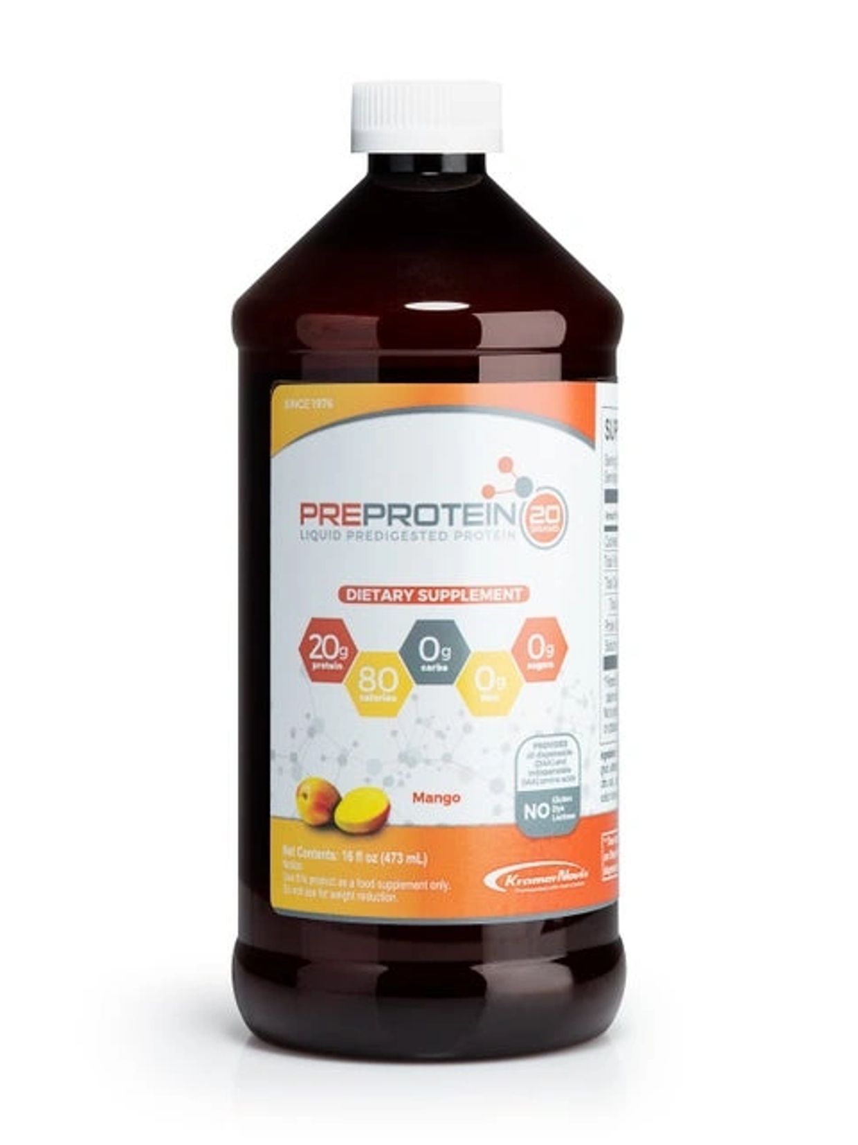 Pre-Protein® 20 is a predigested liquid protein containing all indispensable and dispensable amino acids with added L-Tryptophan and L-Cysteine. This 16 oz. bottle provides up to 15 servings in a convenient container and may be mixed with a favorite beverage or consumed directly.